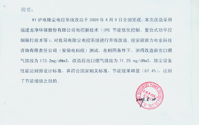 华能汕头电厂#3炉锅炉是600MW机组,静电除尘器的本体采用龙净环保BE型除尘器,高压电控部分采用龙净环保的GGAJ02-1.6A/72KV 、GGAJ02-1.2A/80KV K型设备,低压电控部分采用采用龙净环保研制的低压集控系统,控制系统采用基于前端机的IPC电除尘智能控制系统,该系统对#3炉电除尘进行集中控制和管理。#3炉电除尘自投运以来,设备除尘效果达到设计要求,烟尘排放达到国家环保要求。