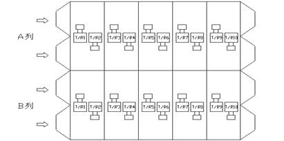 3#炉电除尘器采用双列双室五电场布置,共配置有12台1.6A/72kV和8台1.2A/80kV的高压控制设备,其布置示意图