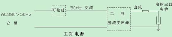 交流电源经可控硅移相调压后由高压硅整流变压器升压整流。基本工作频率就是电网频率(50Hz)。